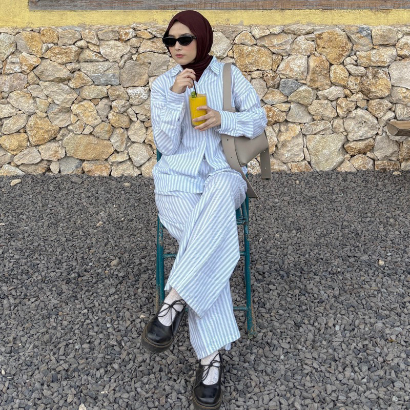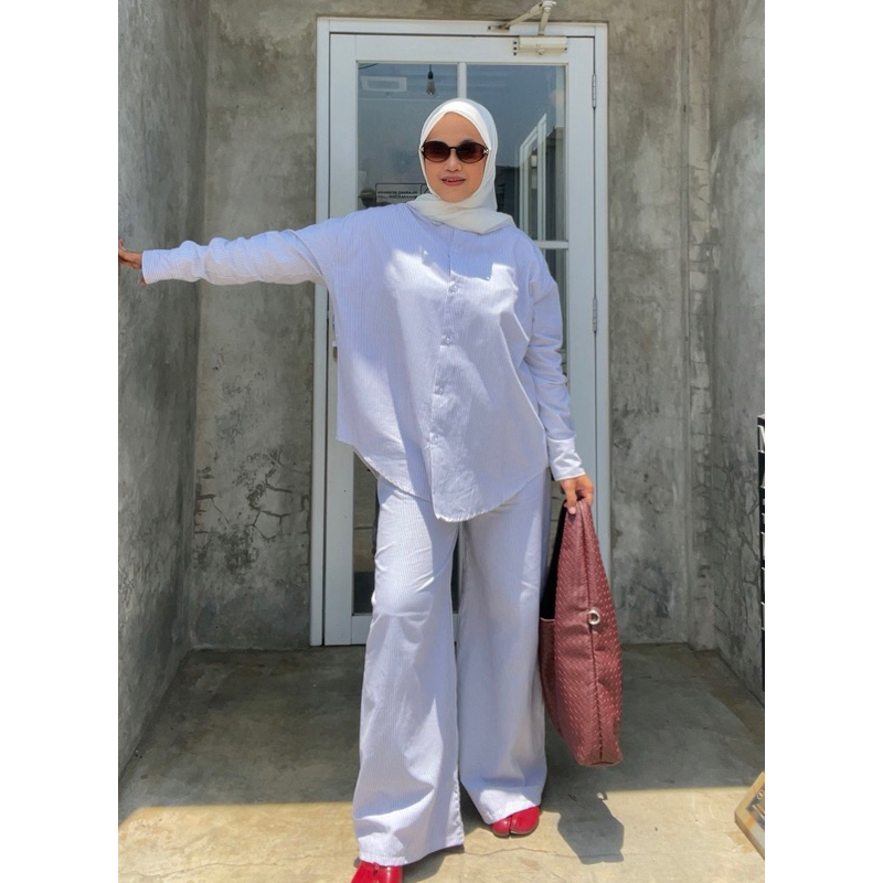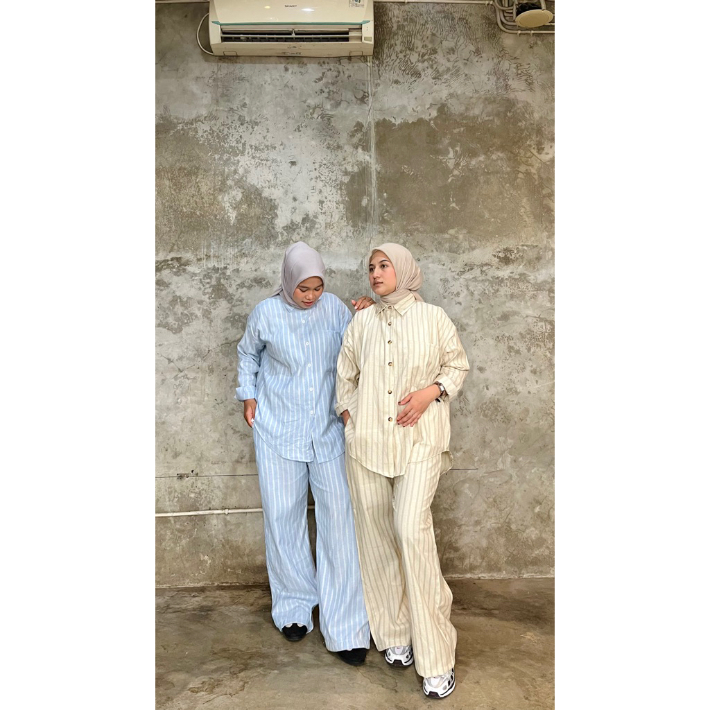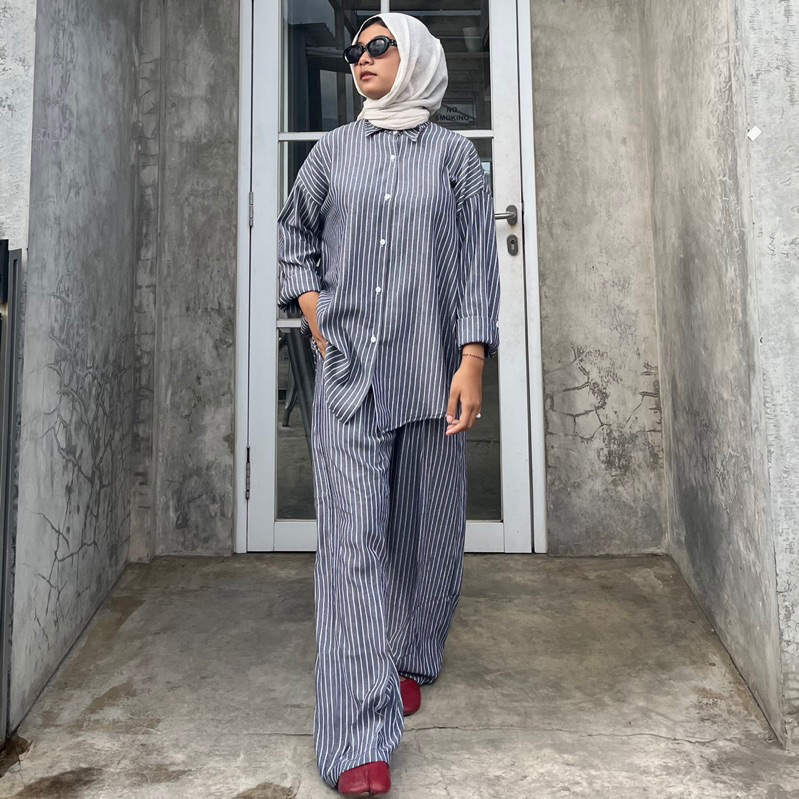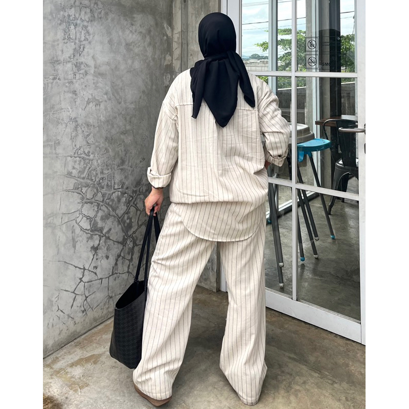 Aruna - One set Stripe / Stripe Pants / Kemeja Stripe / Kemeja stripe 4 look