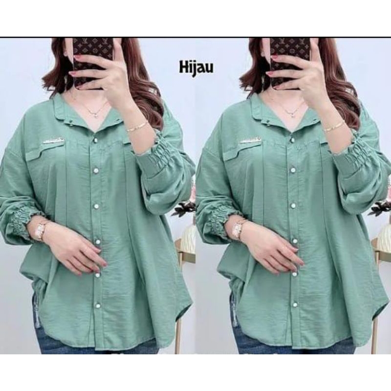 Salsa shirt kemeja oversize - Atasan wanita polo linen