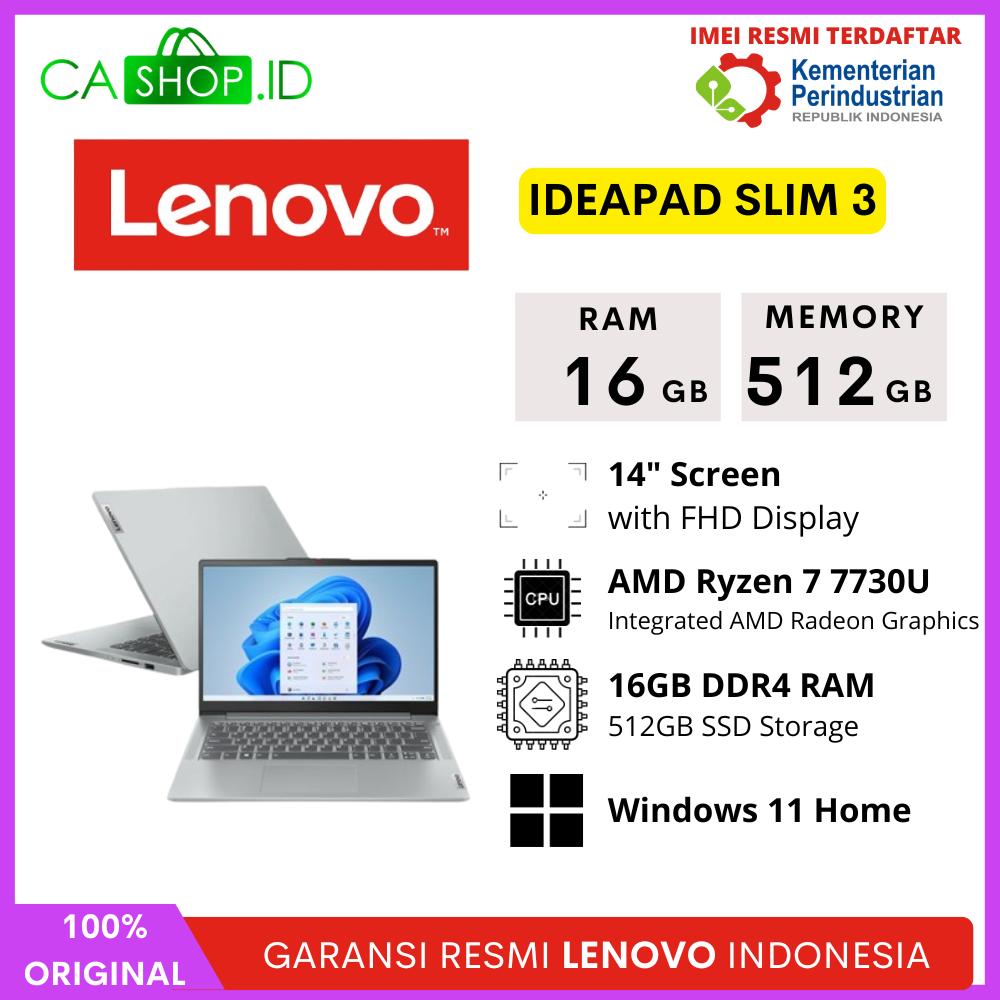 Laptop Lenovo IdeaPad Slim 3 14ABR8 RAM 16GB 512GB SSD Notebook Ryzen 7 7730U Windows New Original Garansi Resmi