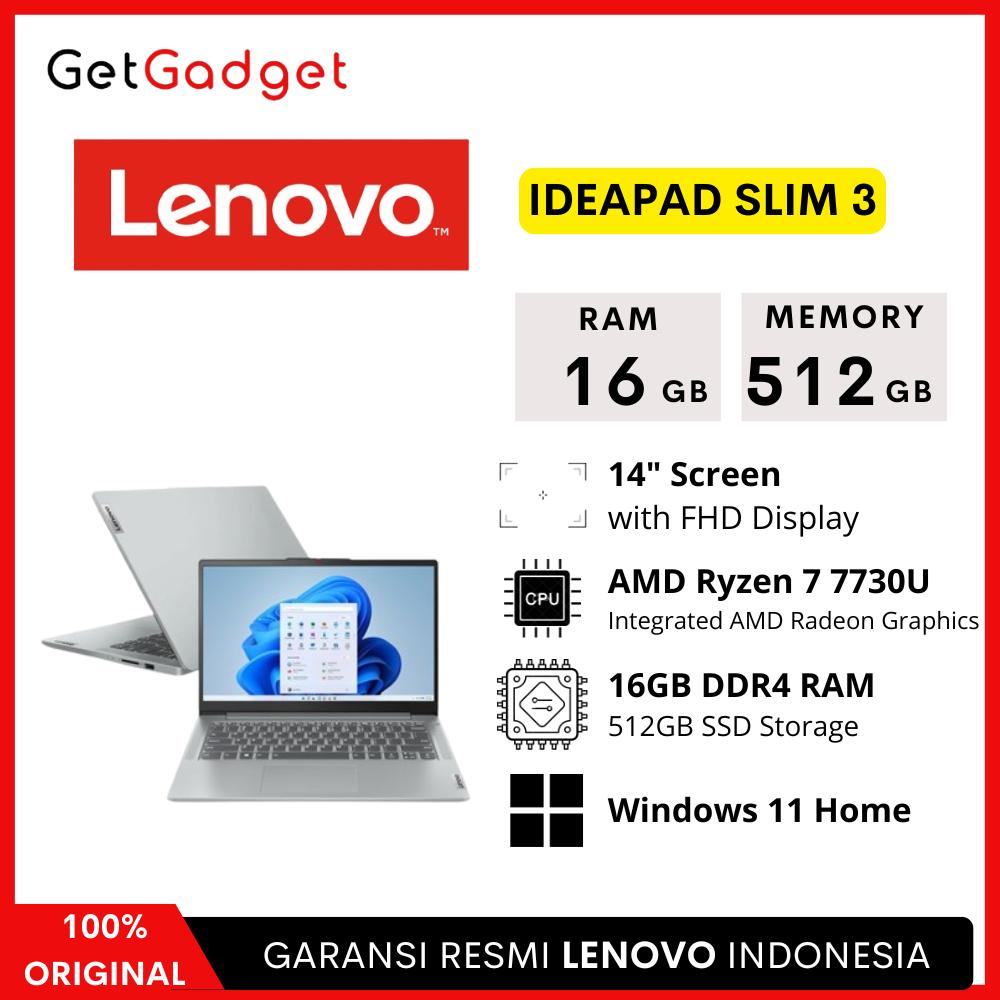 Laptop Lenovo IdeaPad Slim 3 14ABR8 RAM 16GB 512GB SSD Notebook Ryzen 7 7730U Windows New Original Garansi Resmi