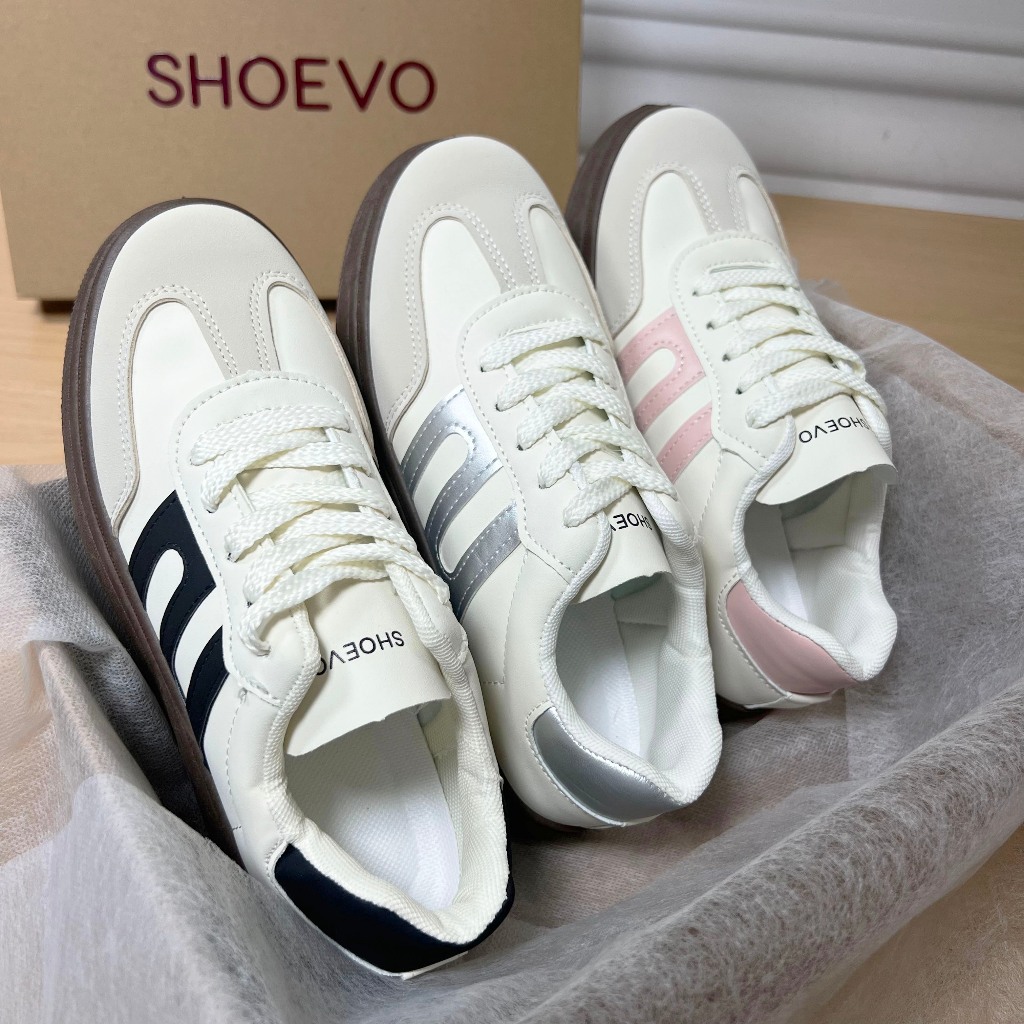 SHOEVO Sepatu Wanita Sam-ba Bergaya Kasual Nyaman Baru Hitam / Krem / silver / Merah Muda ST085