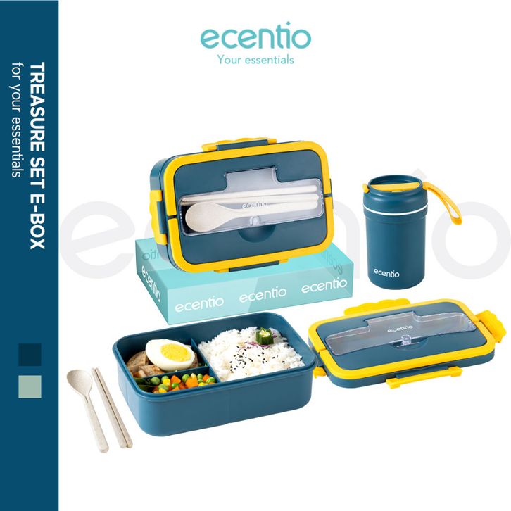 ecentio lunch box set Jerami Gandum lunch box tempat makan anak kotak Bekal makan & Mangkuk sup 300ml /free Sendok/1L