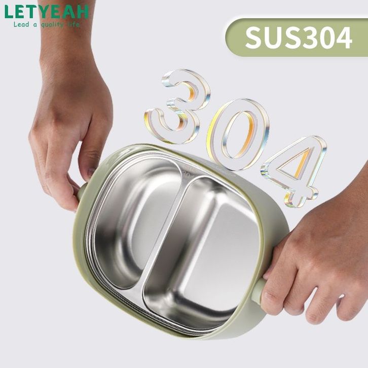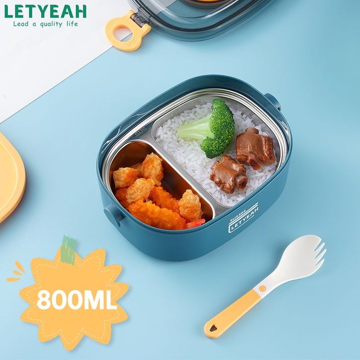 LetYeah 2 Grid Lunch Box 304 Stainless Steel Kotak Makan Anak 800ml Free Garpu