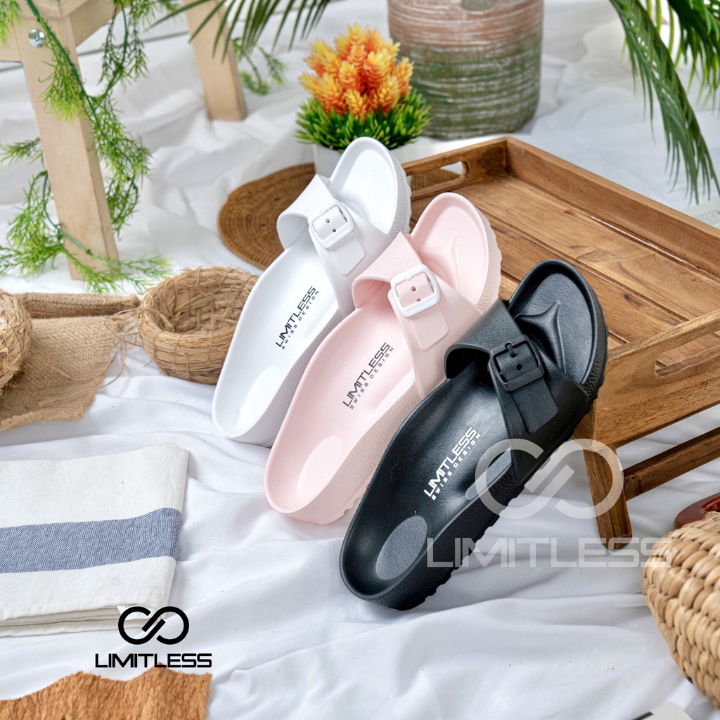 Limitless - Sandal Slop Wanita Flat Korean Style Sendal Cewek Selop Anti Slip Elastic Empuk Terbaru