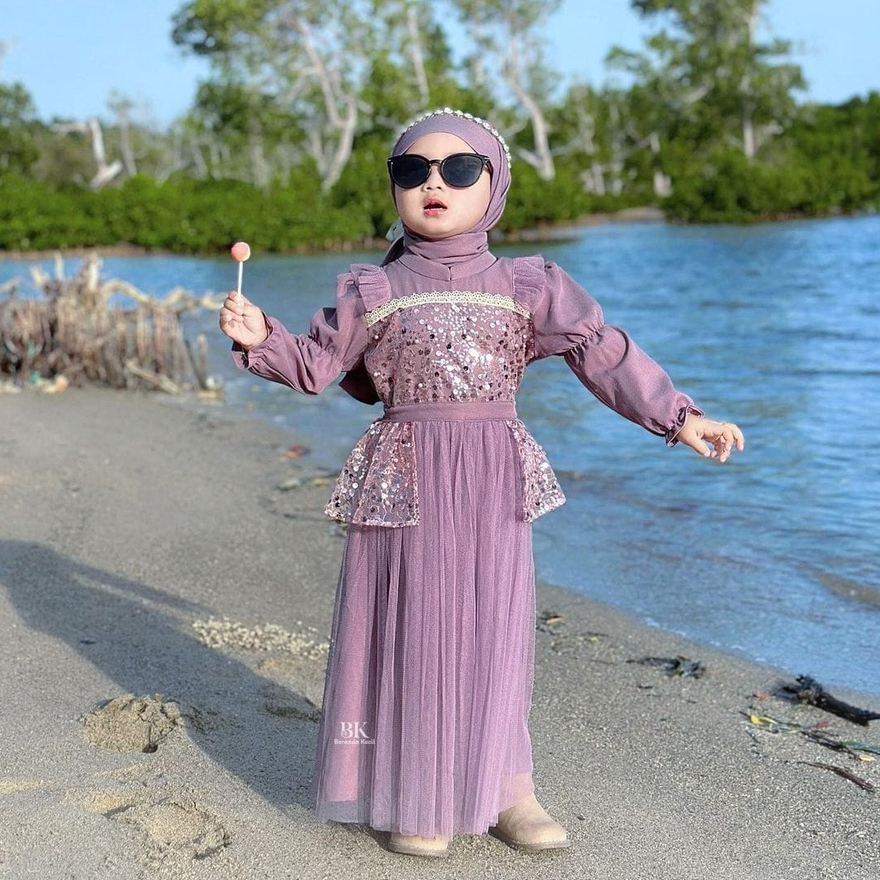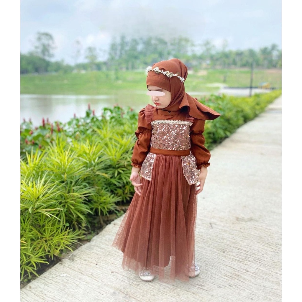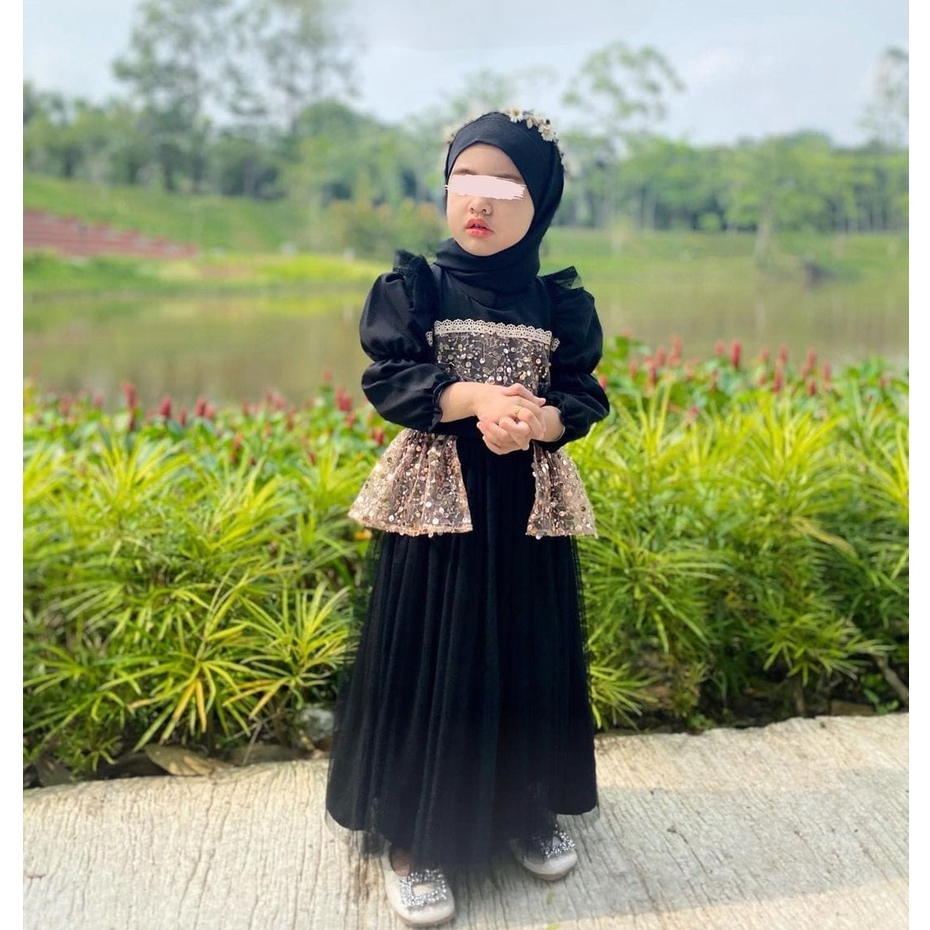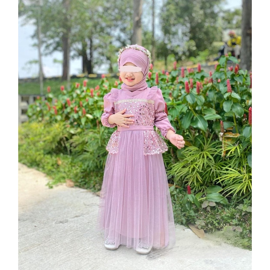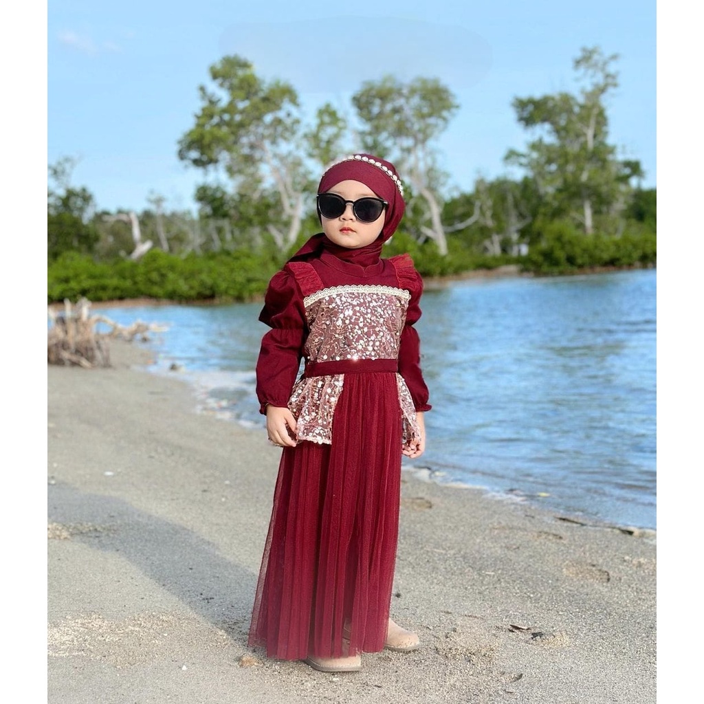 FULLOFJOY Yasmin Kids Dress Sequined Tille Gamis Anak Perempuan 3 - 5 Tahun