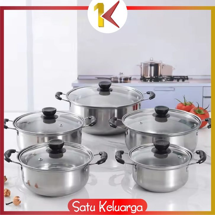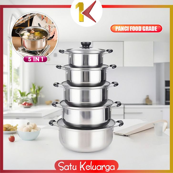 SK-C1340 Panci Sup 5IN1 Bahan Stainless Steel Alat Dapur Soup Pot Tutup Kaca High Quality / Set Panci Steam Pot