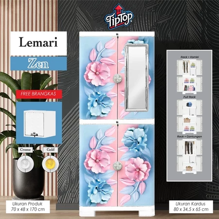 Lemari Plastik Berkualitas 2024 - Lemari Pakaian Akako Gantung + Kaca Minimalis VIP 2 Pintu Pakai Kaca