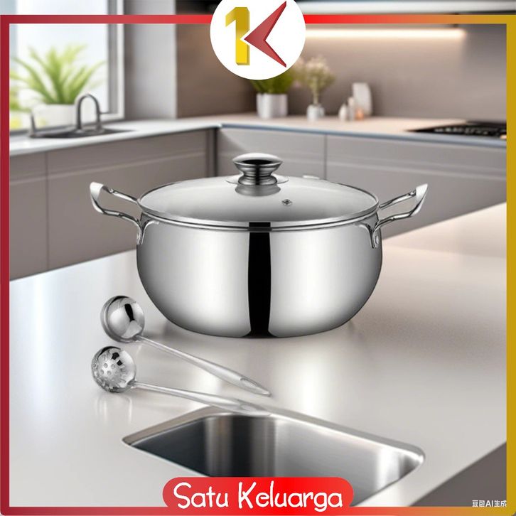 SK-C1339 Panci Rebus Stainless Steel 5IN1 Peralatan Dapur Panci Tutup Kaca Serbaguna / Set Panci Masak Gagang