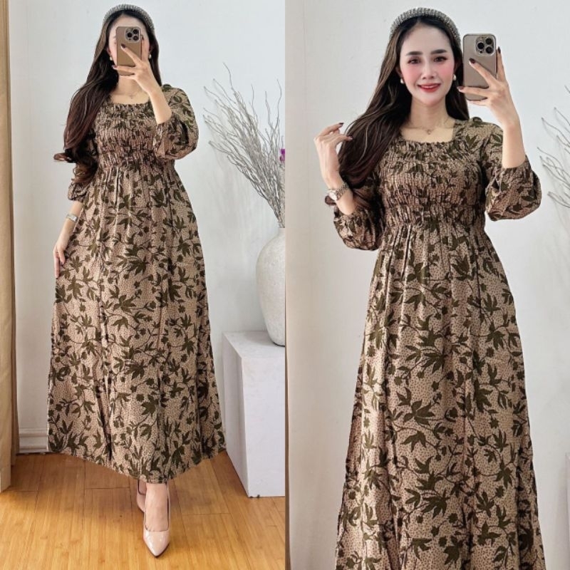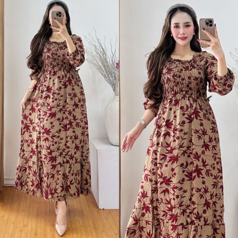Gamis Long Dress Smok Kerut Dada Terbaru LD 110 - Gamis Rayon Premium - Midi Dress Gamis Terbaru
