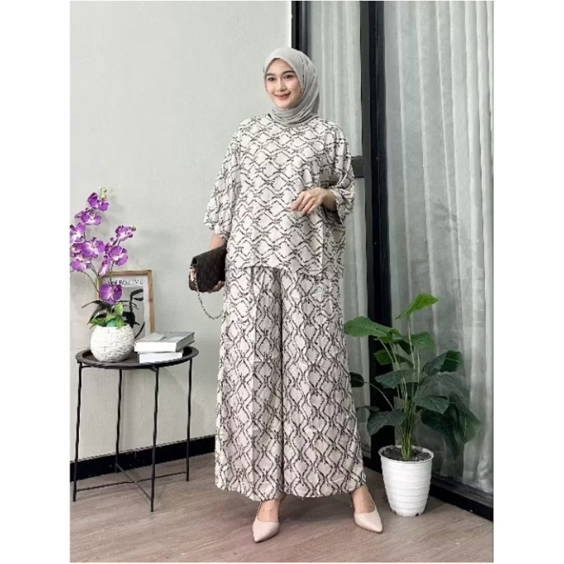 Setelan Baju Celana Kulot Jumbo Lengan 7/8 Rayon Premium