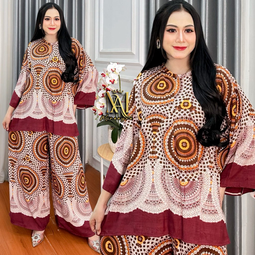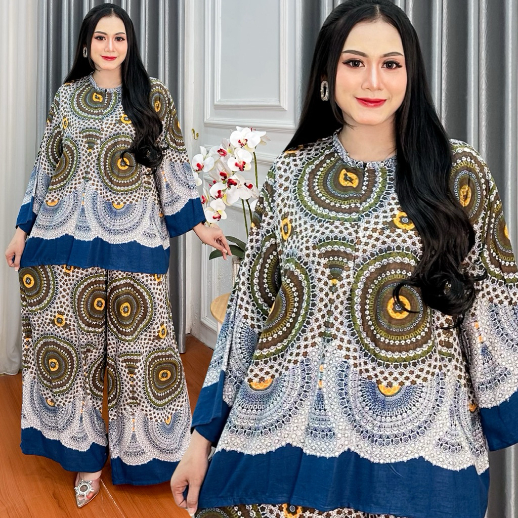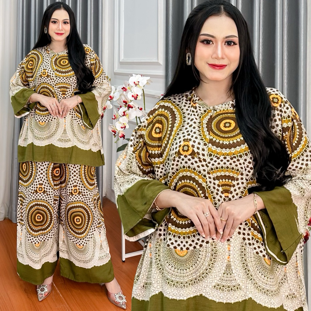 Tania Setelan Terbaru Kekinian JUMBO Setelan Celana Kulot Panjang Lengan 7/8 Rayon Motif Premium Baju Dewasa Wanita Adem