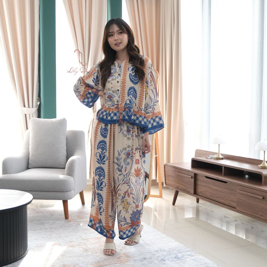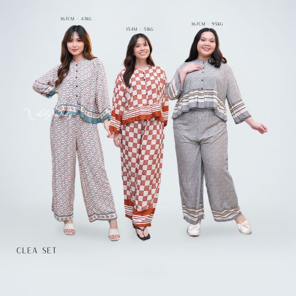 Clea Set Setelan Wanita Celana Kulot Atasan Ruffle Rayon Premium Jumbo Busui Terbaru