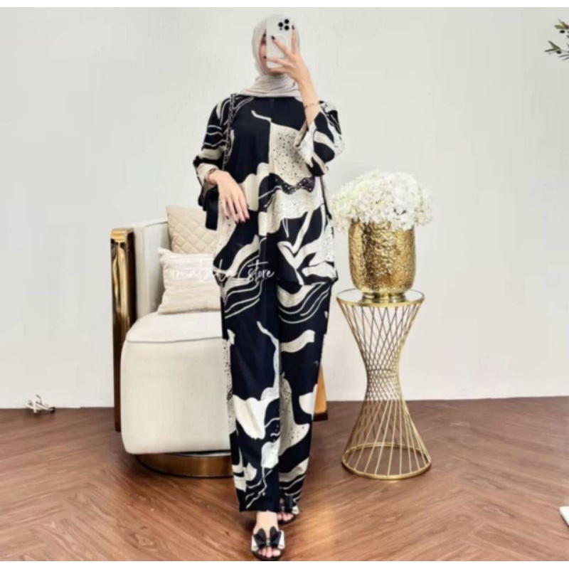 Tania Setelan Terbaru Kekinian JUMBO Setelan Celana Kulot Panjang Lengan 7/8 Rayon Motif Premium Baju Dewasa Wanita Adem