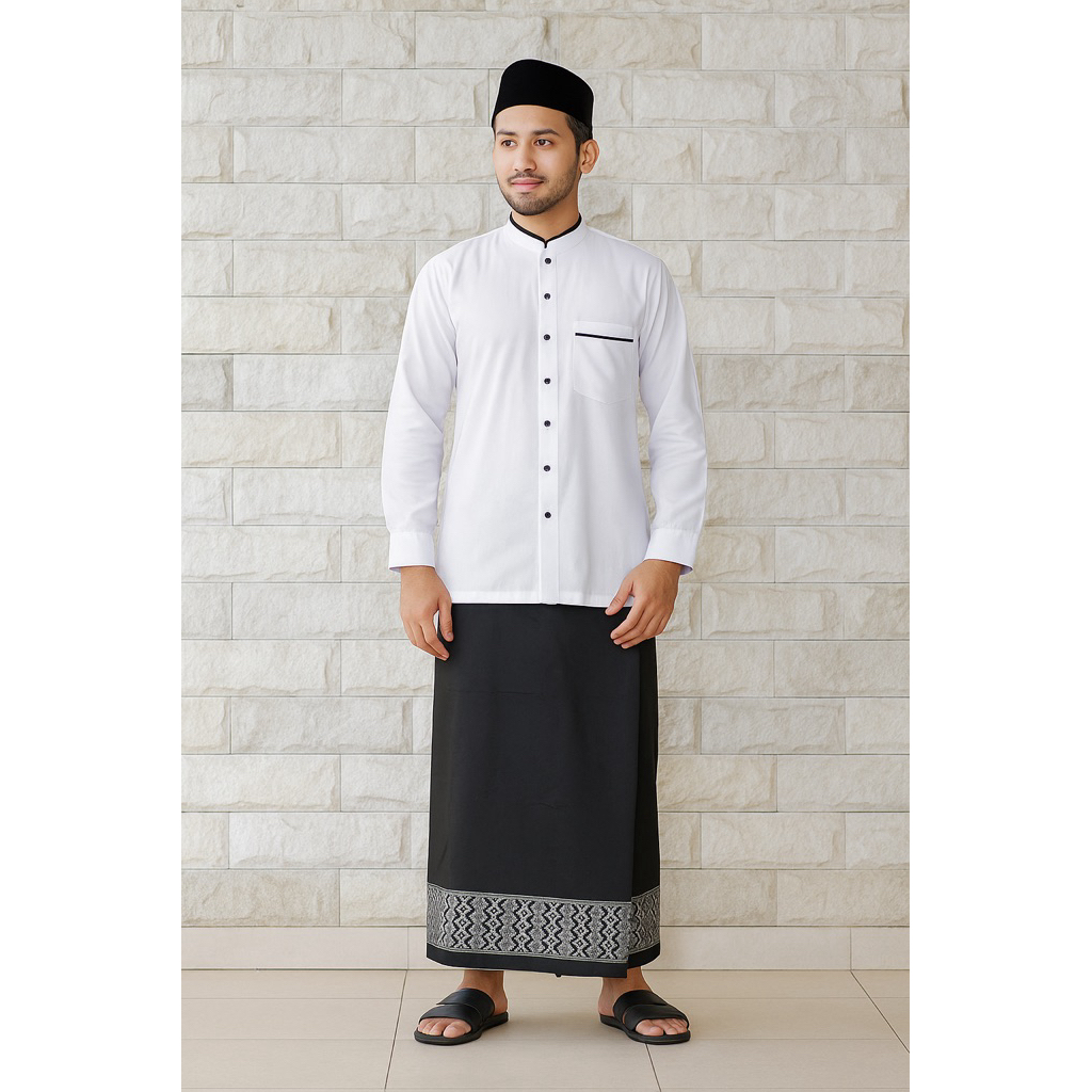 [Mall] SARUNG TENUN HITAM POLOS MOTIF DOBBY SABUK