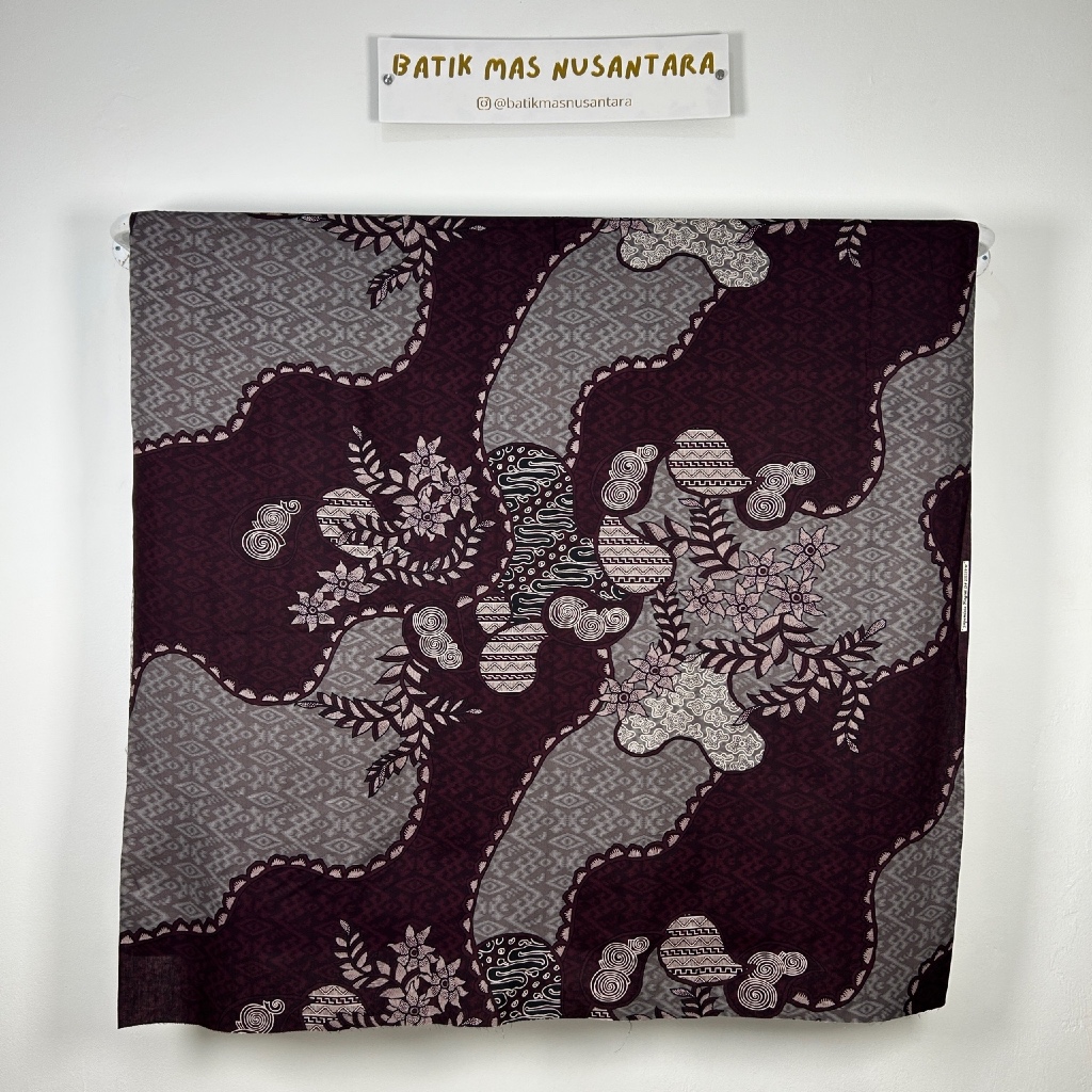 Kain batik katun premium motif Parang Bunga Burgundy ( Per Meter )