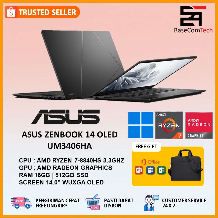 ASUS ZENBOOK 14 OLED UM3406HA | RYZEN 7-8840HS 16GB/512GB 14.0 INC TOUCH WUXGA OLED 100 PERSENDCI-P3 WIN11
