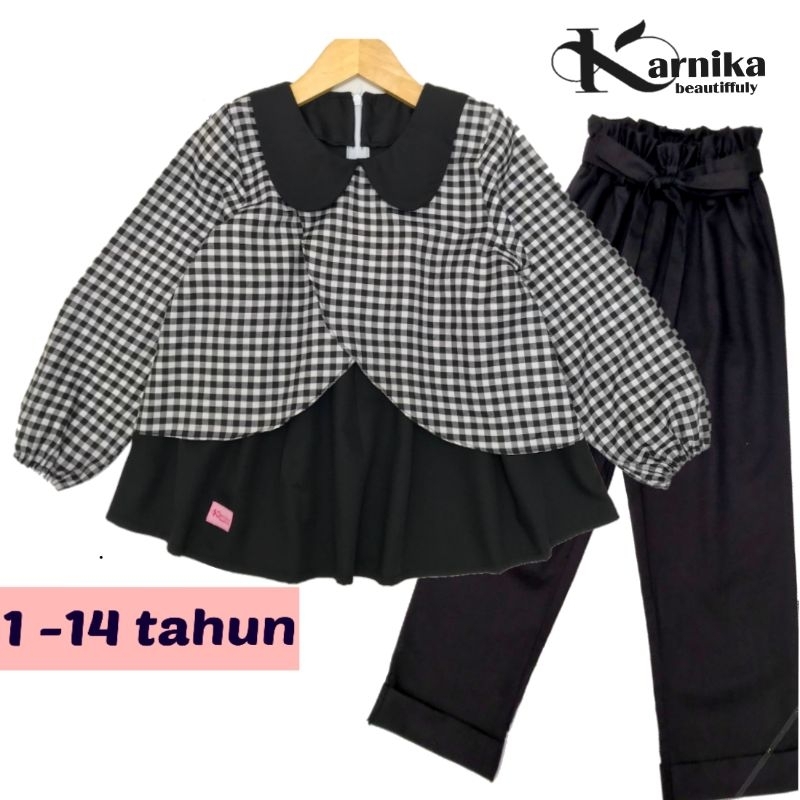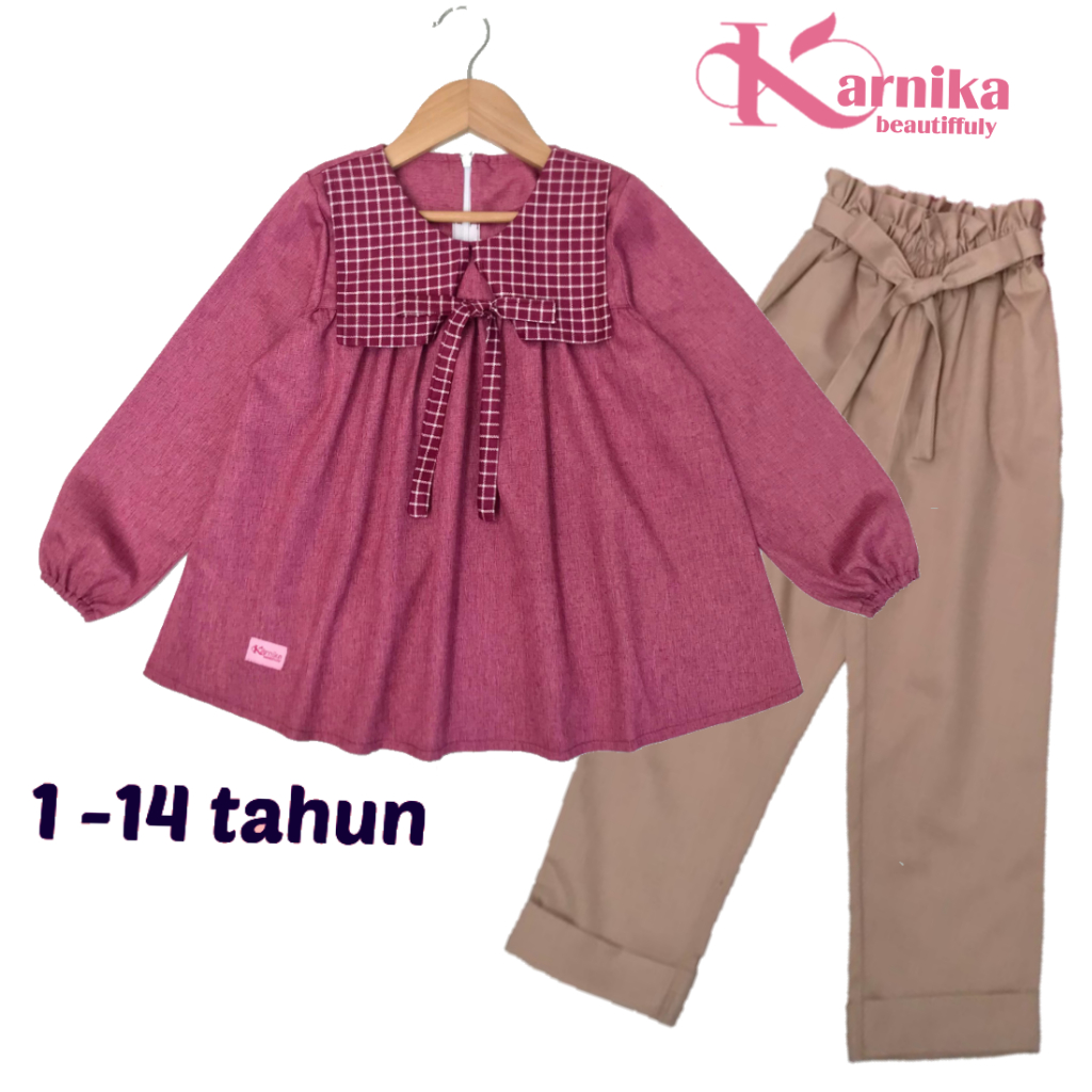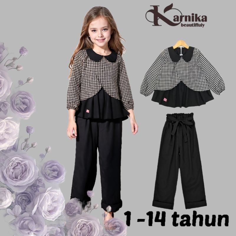 KARNIKA SET BAJU ANAK PEREMPUAN KOREAN STYLE SEMI TUNIK CELANA PANJANG