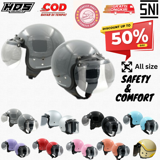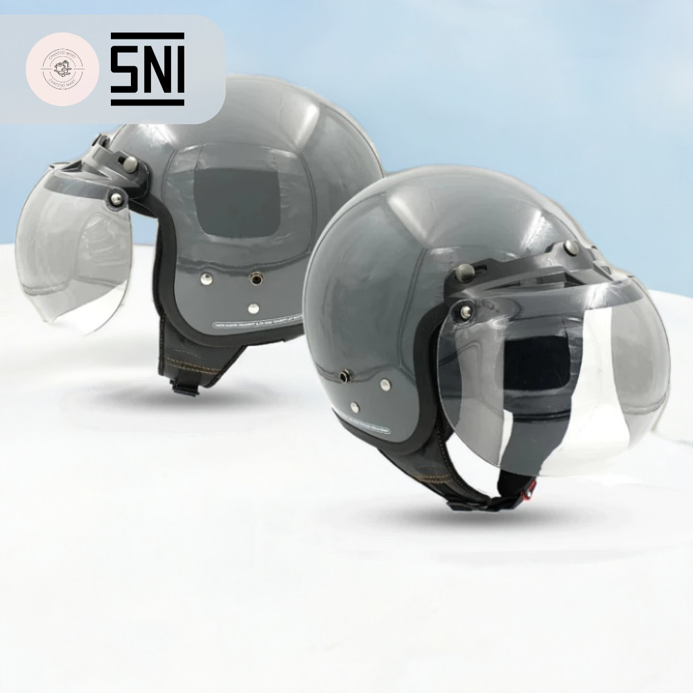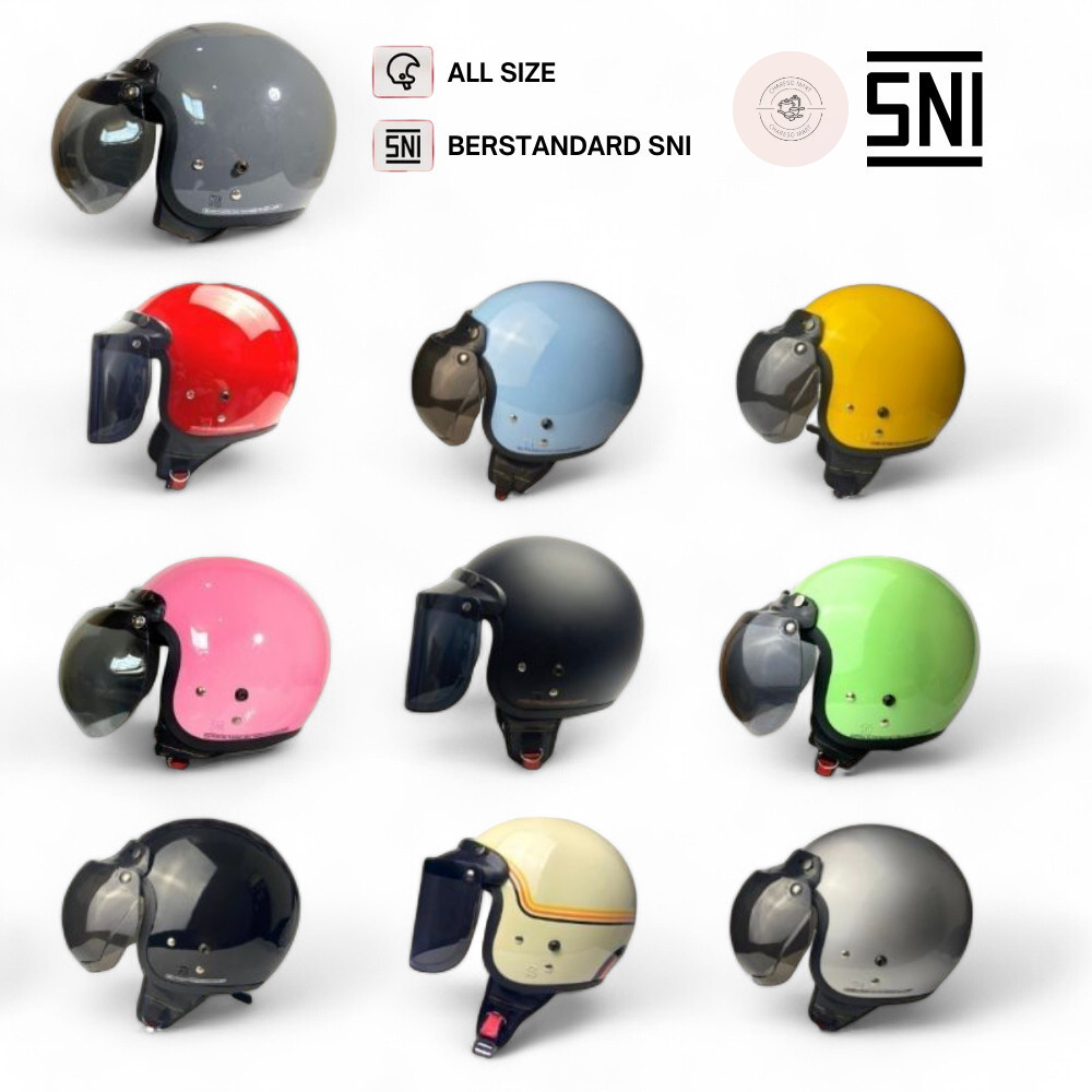 HELM BOGO DEWASA CLASSIC HALF FACE POLOS SNI HDS HELMET MOTOR COWOK CEWEK HIJAB CEPOL WANITA PRIA