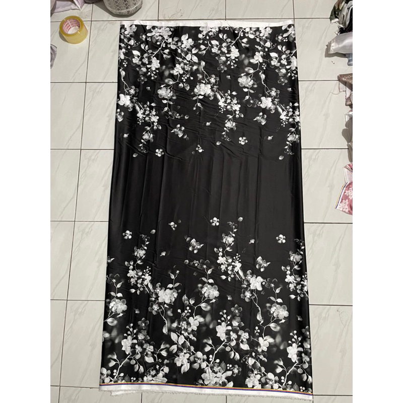 BAHAN KAIN SUTRA ARM SILK PREMIUM MOTIF BLACK AND WHITE LEMBUT ADEM [HARGA 0,5 METER] KAIN SUTRA SILK METERAN MURAH / ARABIAN SILK MOTIF / KAIN GAMIS SERAGAM