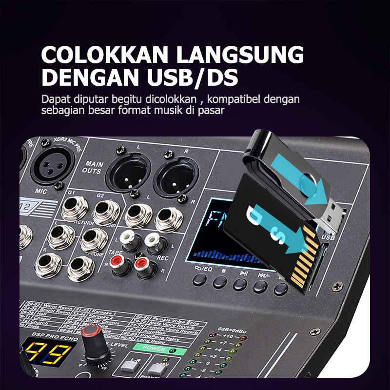Mixer Audio,Mixer Karaoke,Pencampur Audio,Built-in 7-band EQ,Bawaan Memiliki Phantom Power 48v,USB/SD/Bluetooth