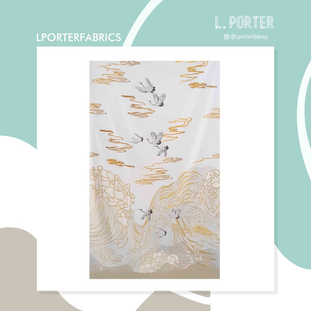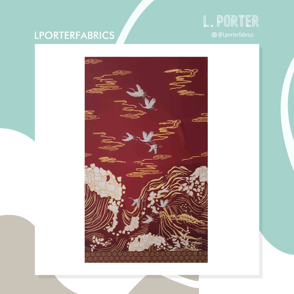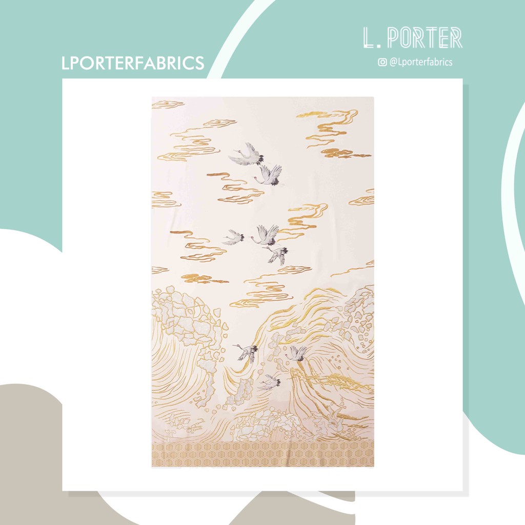 Kain Sateen Bridal/ Duces/Duches motif Oriental Gallant Cranes/Kain/Sangjit/Kain Chinoiseries