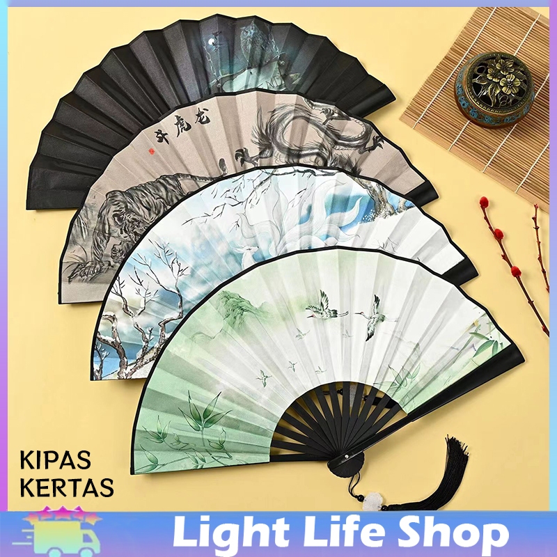 Kipas Kertas Cina /Kipas Lipat Kertas Motif Tiongkok / Kipas Lipat Sutra China