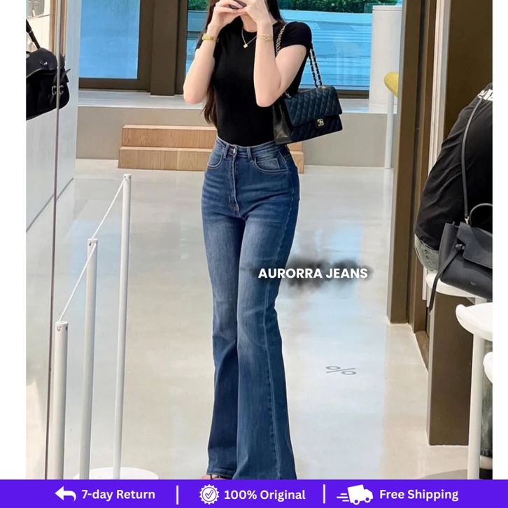 Cutbray Jeans Retro Whisker 114 Premium Strechy Melar - Celana Cutbray Jeans Flared - Celana Panjang Wanita Kekinian
