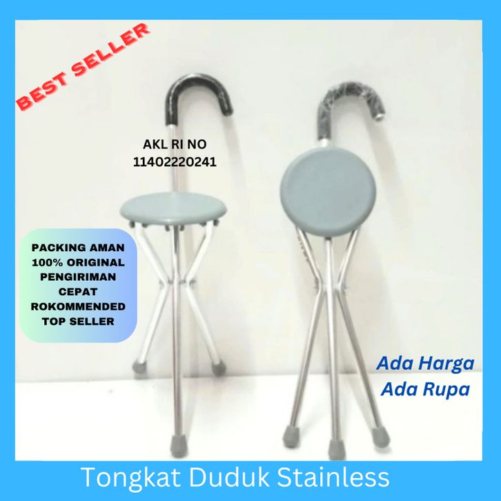 TERLAKU Tongkat Duduk Lipat Stainles Orang Tua / Tongkat Kursi Lipat / Kursi Bangku Sholat /Tongkat Jalan Orang