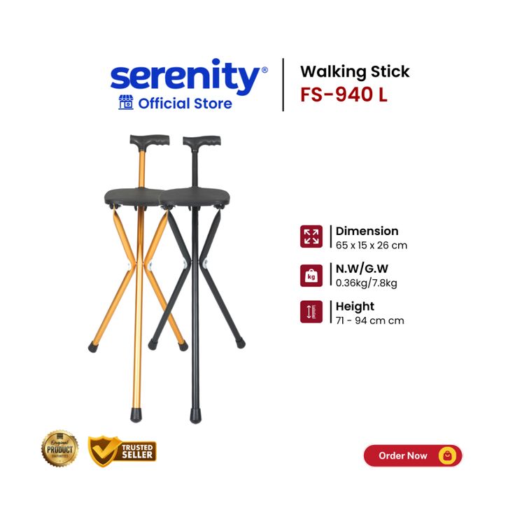 GROSIR Serenity Alat Bantu Jalan / Tongkat + Kursi Duduk Lipat FS-940L oferh