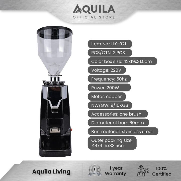 NEW Aquila HK021 Commercial Smart Coffee Grinder Burr Blade Mesin Penggiling Kopi 19 Gears Thickness Adjustment