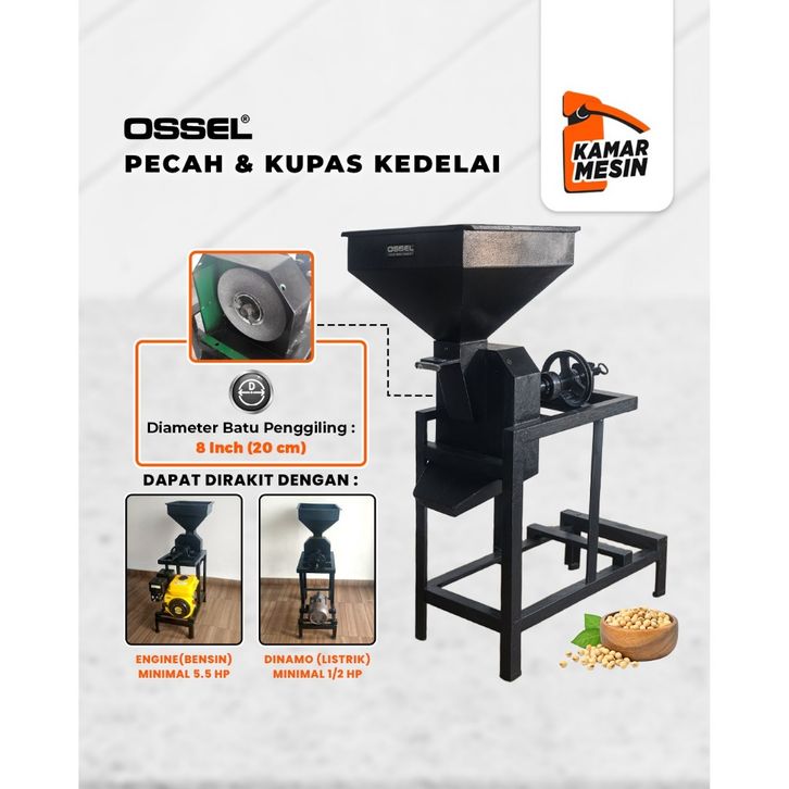 OSSEL Rangka Mesin Pemecah Kedelai Pengupas Kulit Ari Kedelai Pecah Kedelai OSSEL