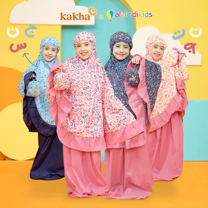 NEW Kakha x Alkindikids - New Arrival - Mukena Anak Hijaiyah Series (1-12 tahun) / Mukena Travel / Mukena Parasut