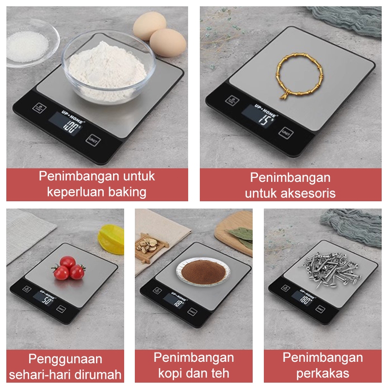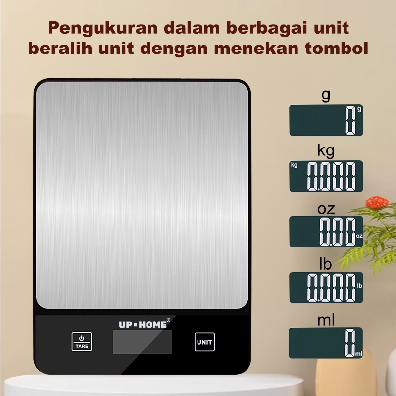 [Mall] UPHOME TIMBANGAN DAPUR DIGITAL 10KG/1G STAINLESS STEEL DENGAN TARE / TIMBANGAN KUE / TIMBANGAN KOPI / TIMBANGAN mas G/KG/LB/OZ/ML/MILK ML