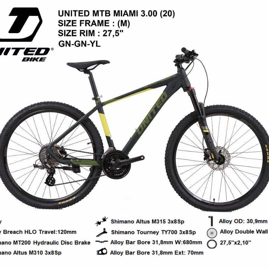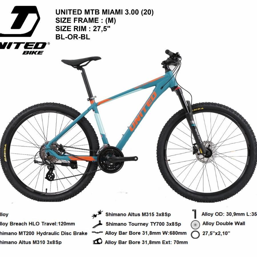 Sepeda Gunung UNITED MIAMI 3.0 27,5 inch SHIMANO Hydraulic Disc brake MTB united Miami 3.0 Size 27,5