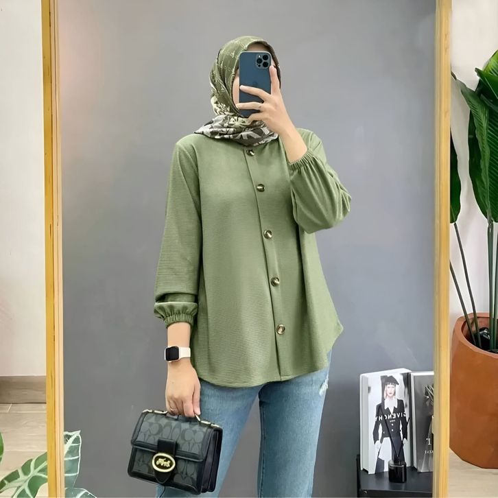 Vallina Outfit - Devanca Shirt Atasan Kemeja Blouse Kantoran Wanita Muslim Premium Airflow Crinkle Fit XL
