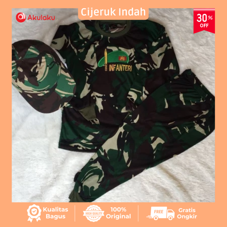 baju profesi anak Setelan satu paket kaos anak panjang plus topi komando anak loreng malvinas setelan satu set