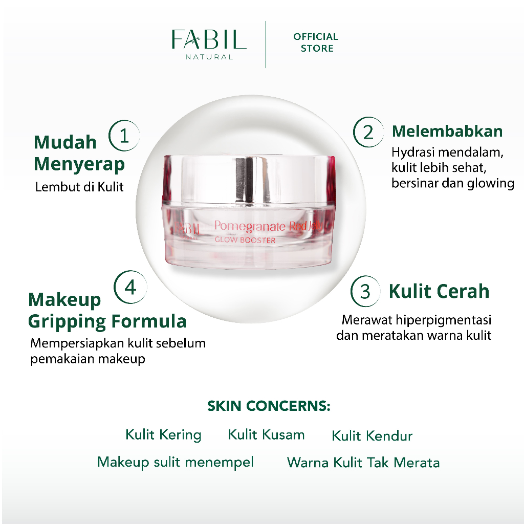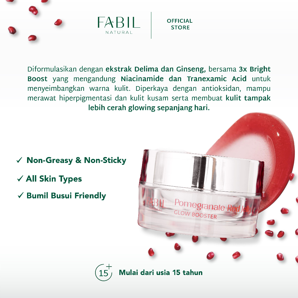 Fabil Pomegranate Red Jelly Glow Booster 15g - Jelly Moisturizer Untuk Menghidrasi Mencerahkan Meratakan Warna Kulit Waj
