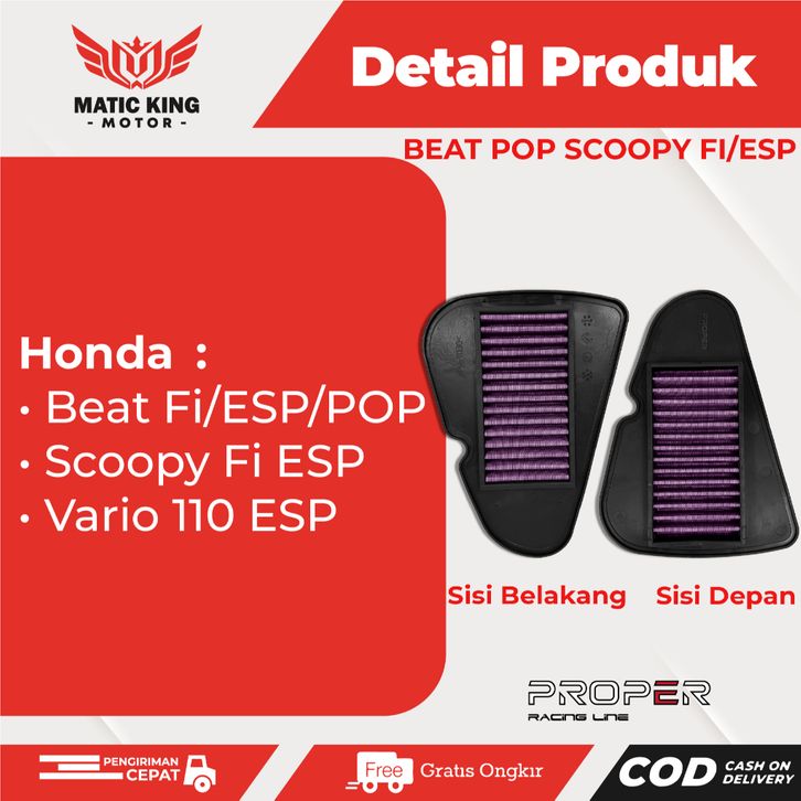 PROPER Racing Line Filter Saringan Udara Hawa Honda Beat Scoopy Vario 110 Fi eSP POP Street K16 K44