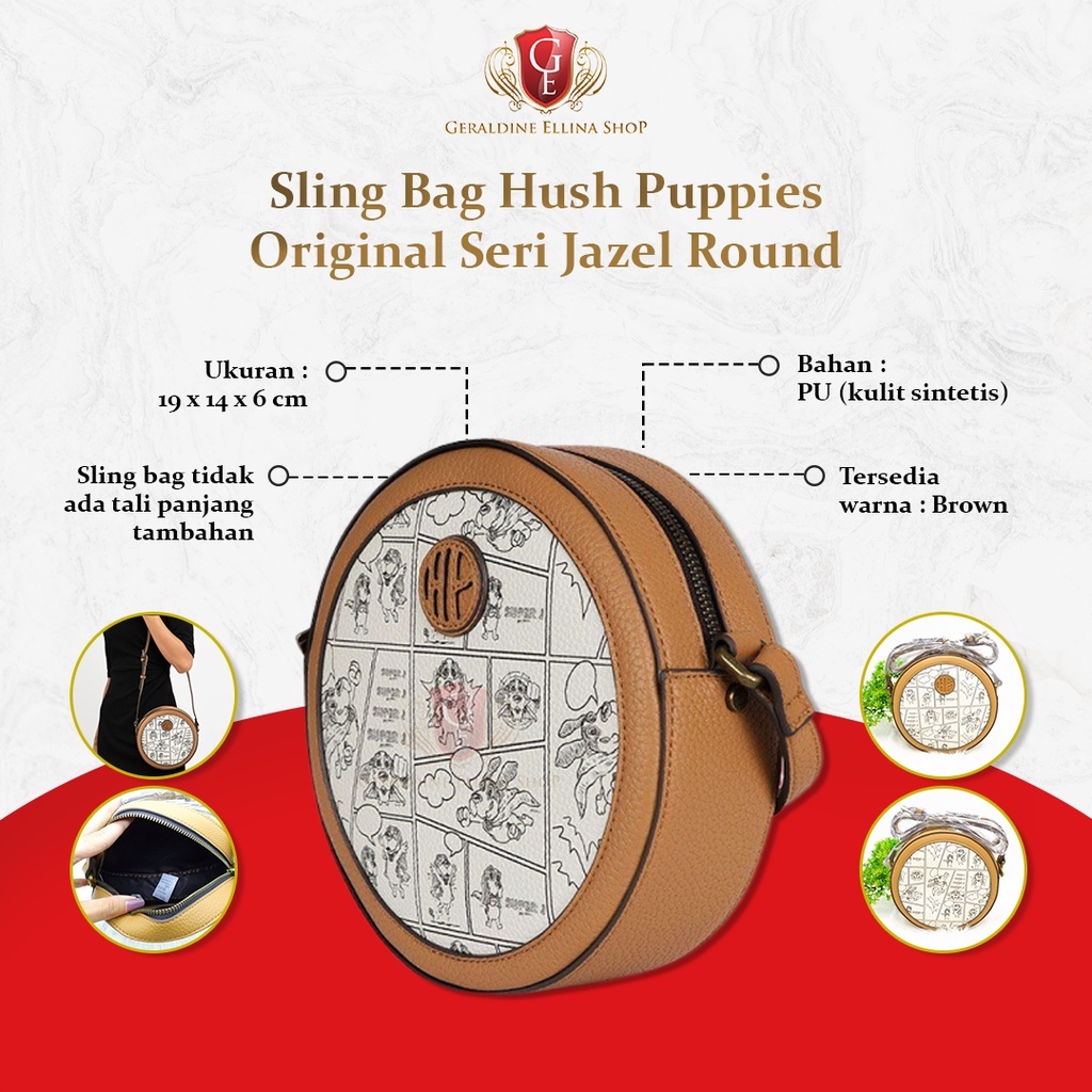 Tas Selempang Slempang Hush Puppies Sling Bag Bulat Wanita Bahan PU Seri Jazel Original