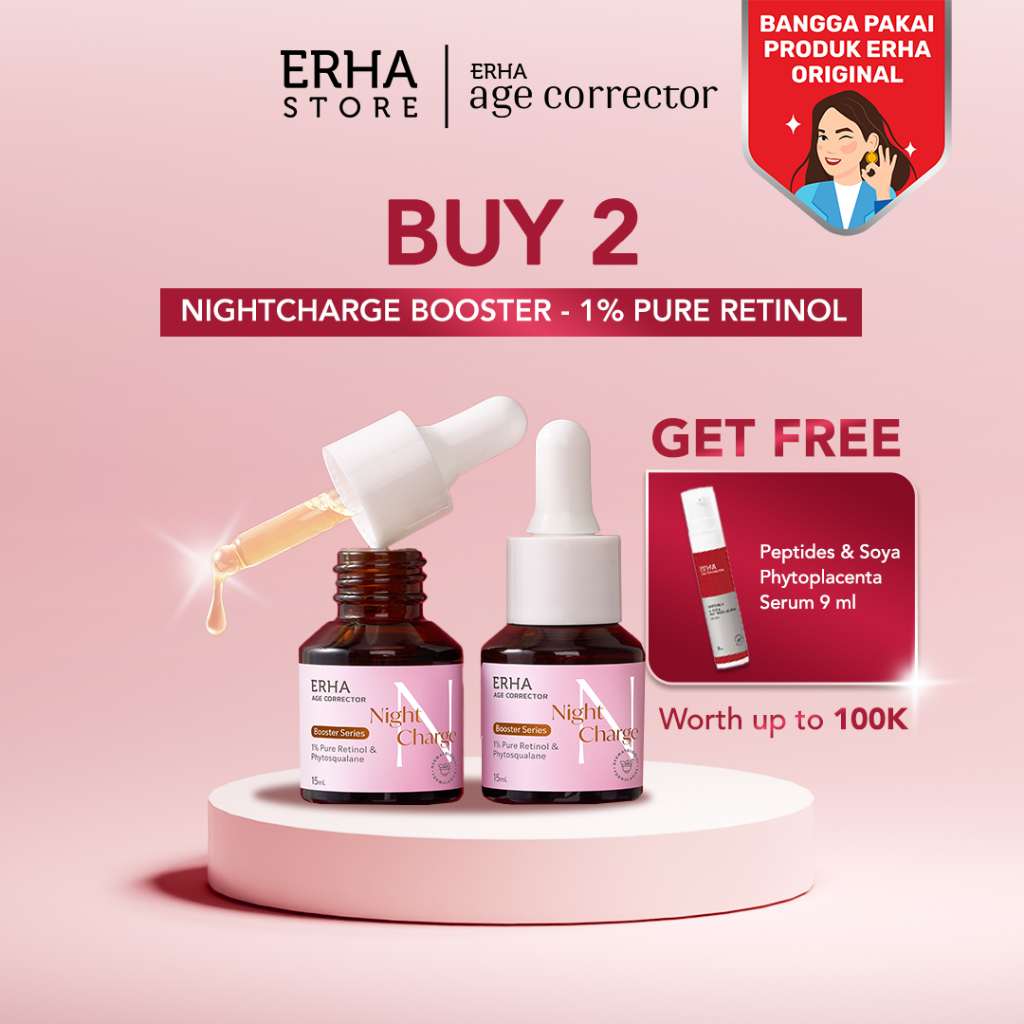 ERHA Twin Flame Age Corrector 1% Pure Retinol in Phytosqualane Night Charge Booster 15ml - Booster Anti Penuaan