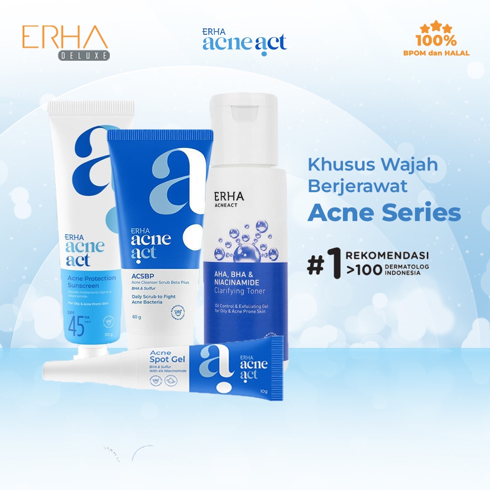 ERHA Paket Jerawat / Sabun ACSBP - Acne Spot Gel - Toner - Sunscreen - Perawatan Jerawat 4 pcs