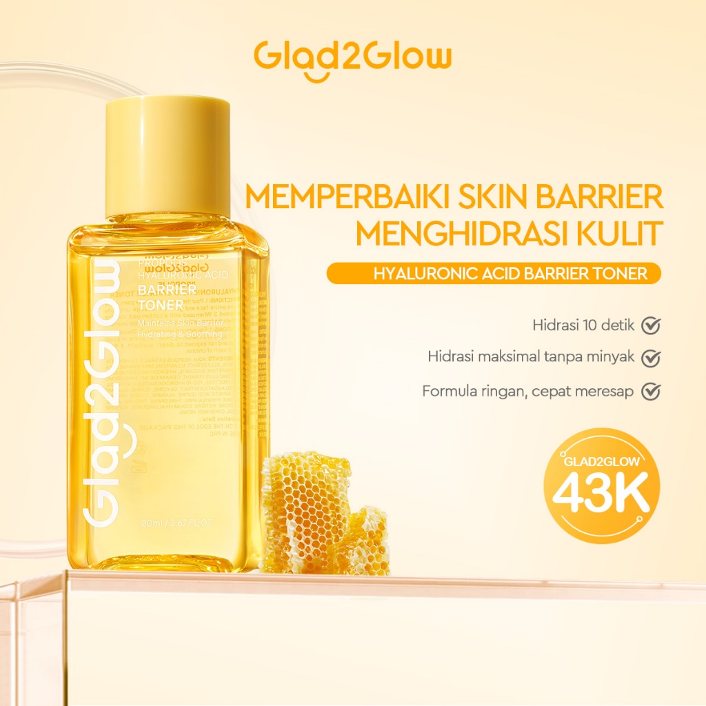 Glad2Glow Barrier Toner Propolis Hyaluronic Acid Essence 80ml | Toner Pelembab Facial Toner Ceramide Wajah Hydrating Pha