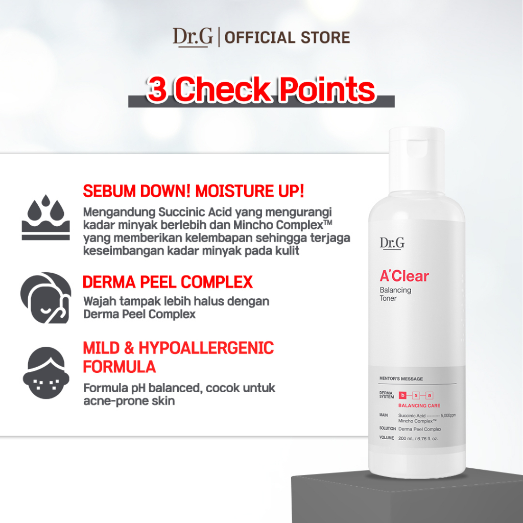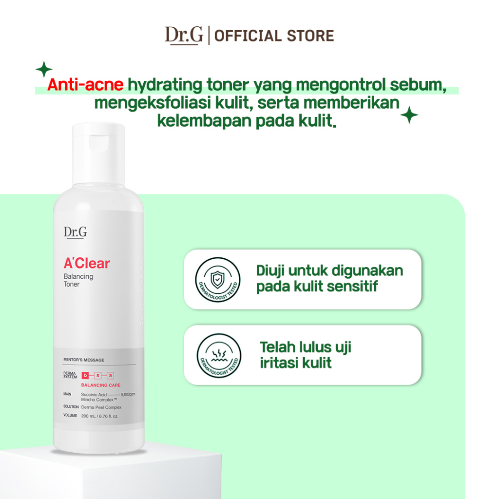 Dr.G A' Clear Balancing Toner - 200ml | Melembapkan Mengontrol Minyak Sebum Mild Formula PHA AHA LHA Kulit Sensitif Acne