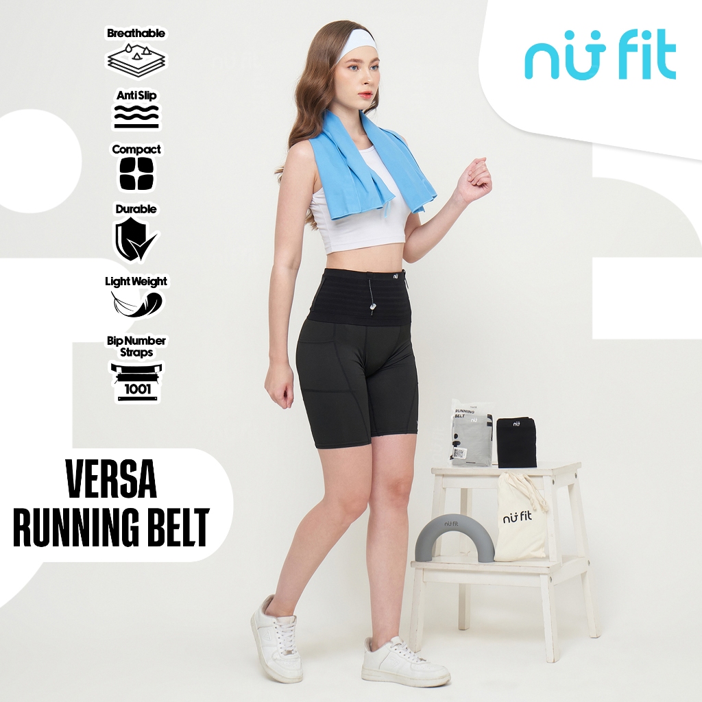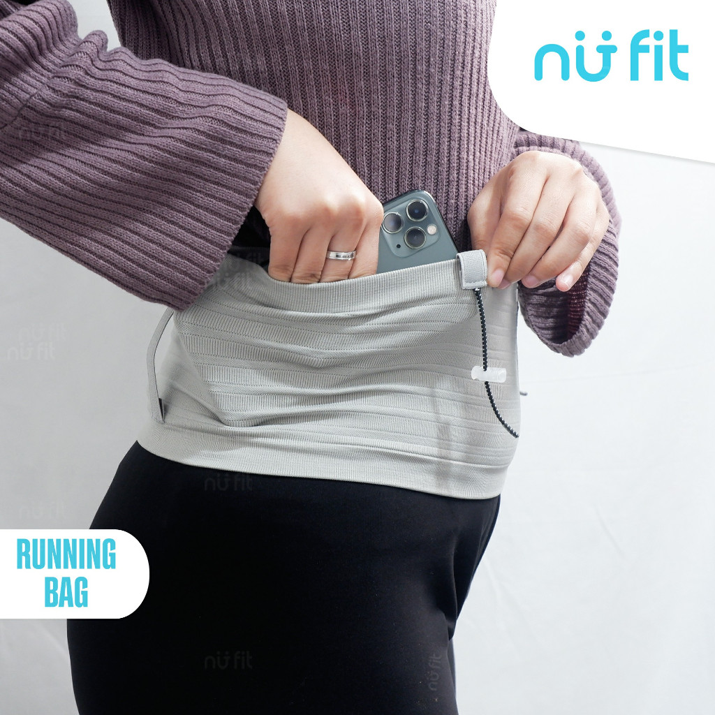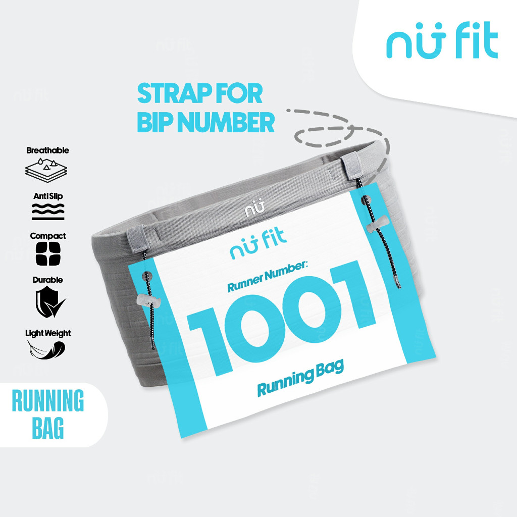 NU FIT - (HITAM DAN ABU) VERSA RUNNING BELT - TAS LARI UNISEX DENGAN BIB - TAS PINGGANG OLAHRAGA MULTI FUNGSI - TAS LARI PRIA WANITA ELASTIS
