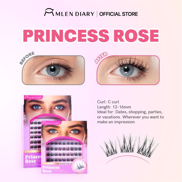 mlEN DIARY-Bulu Mata lulu/Prinicess Rose Seri 12-16mm Bulu Mata Palsu Lem Eyelash Extension dan Pinset,Eyelash Gaya Ero
