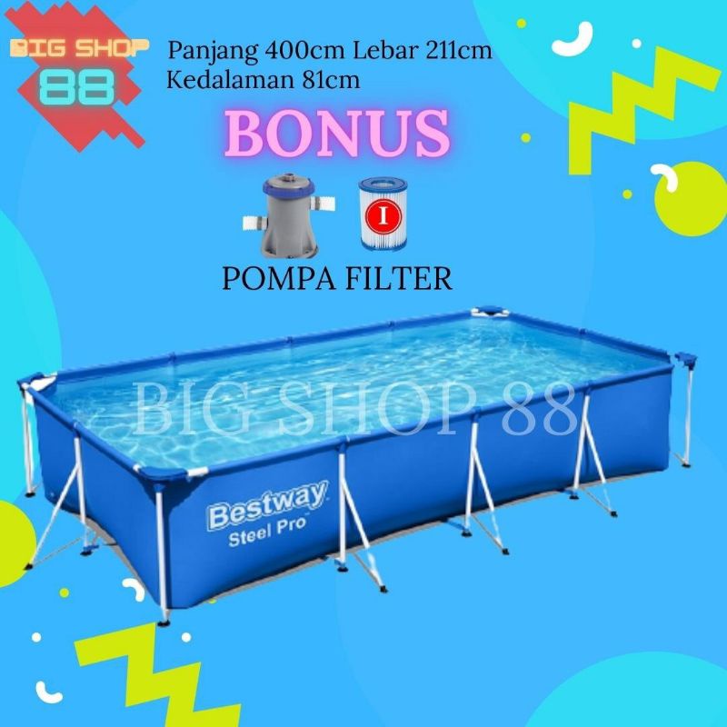 BESTWAY KOLAM RENANG FRAME SQUARE RECTANGULAR SWIMMING POOL 2.2M 2.5M 3M 4M ORIGINAL 100% TERLENGKAP
