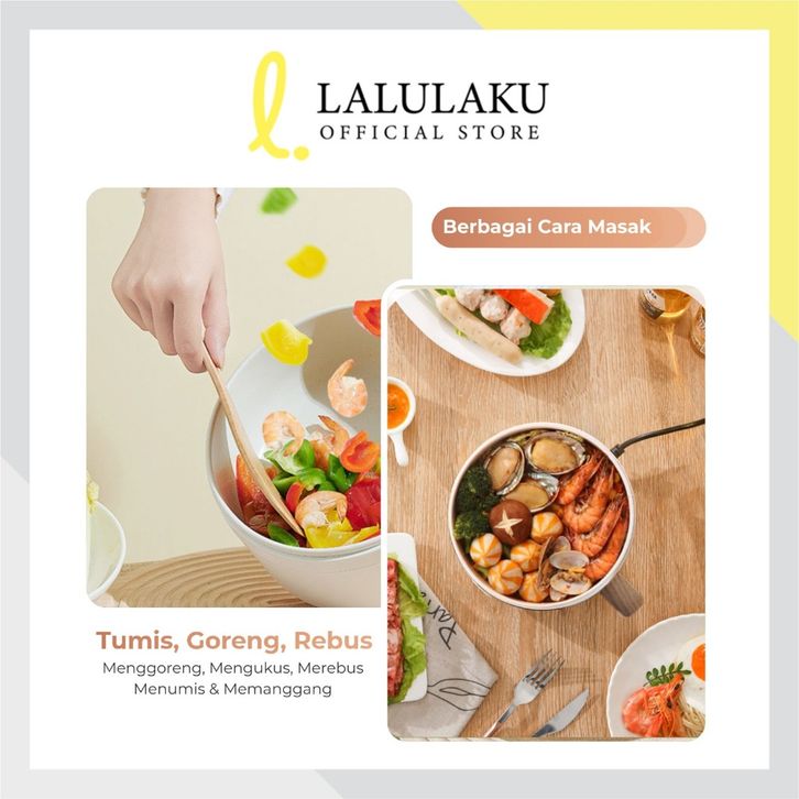 La Natuna Panci Elektrik 1,8L Hot Pot Fry Pan Electric 2in1 Pengukus Panci Penggorengan Elektrik Free Steamer Memasak N