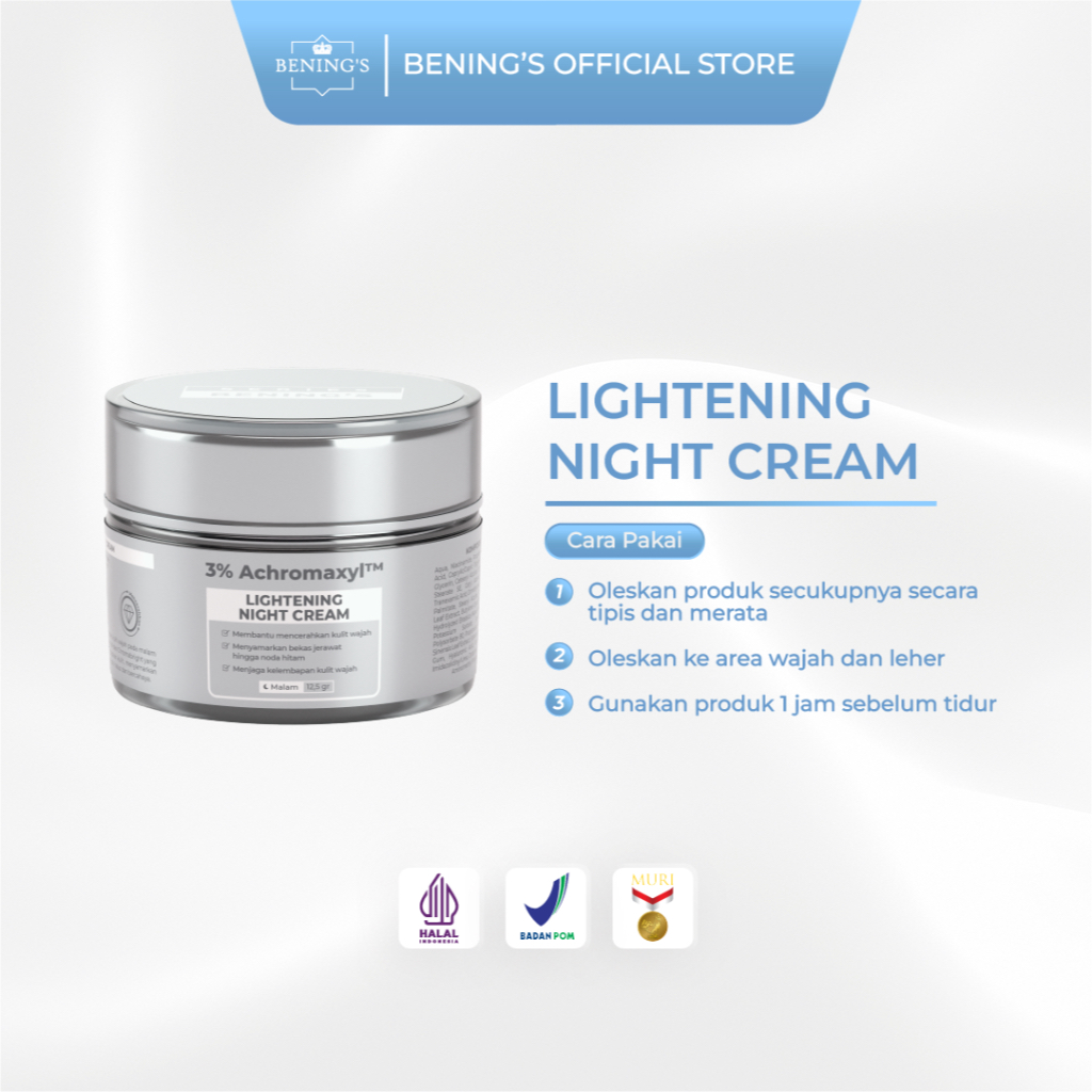 Bening's By Dr Oky Pratama - Night Cream Lightening Krim Malam - Achromaxyl Niacinamide - Mencerahkan Kulit Kusam Glowing - Pria Wanita Busui Bumil