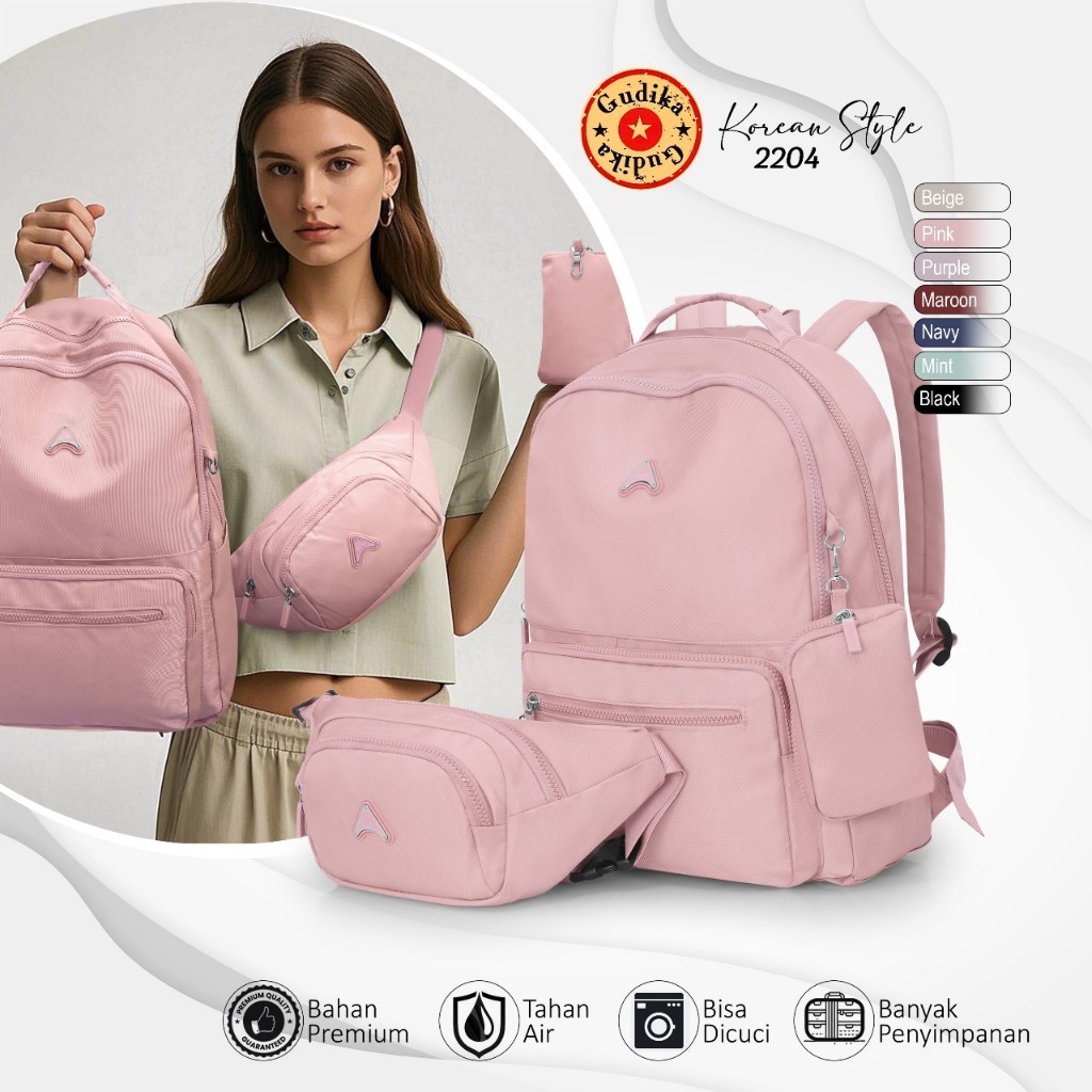 GUDIKA BAGS 2204 - EVERYDAY WITH BACKPACK KOREA STYLE - TAS RANSEL ANTI AIR FREE WAISTBAG & POUCH