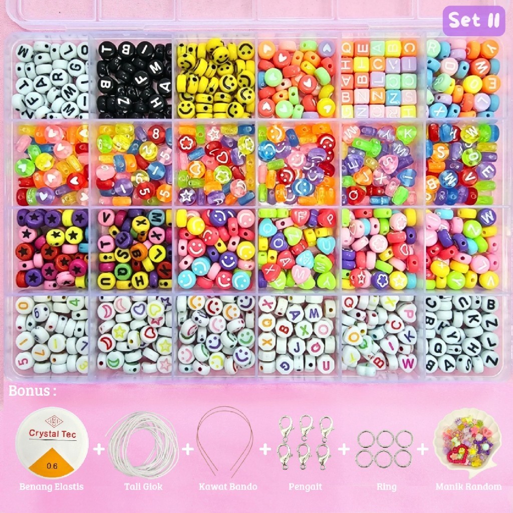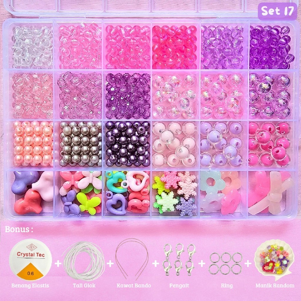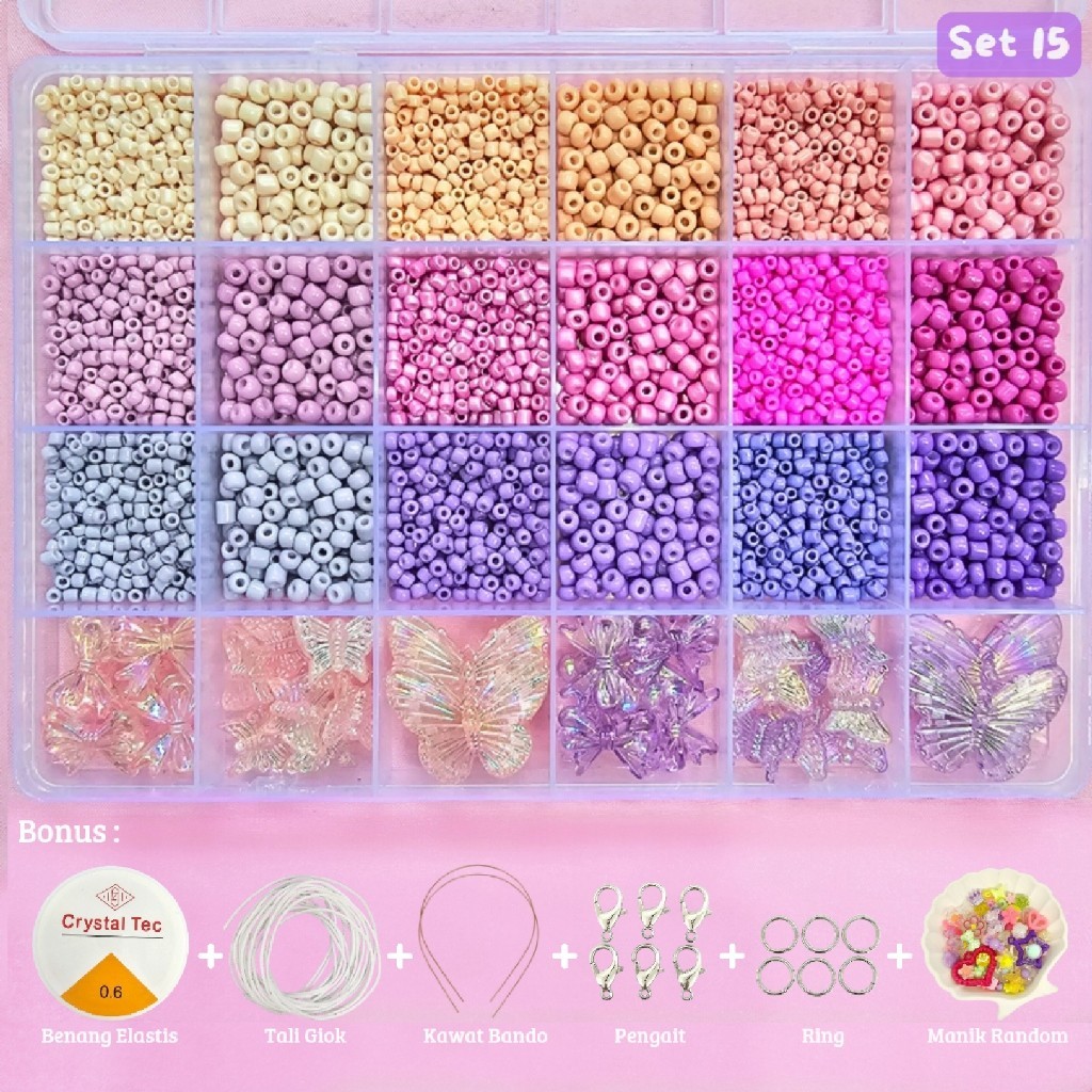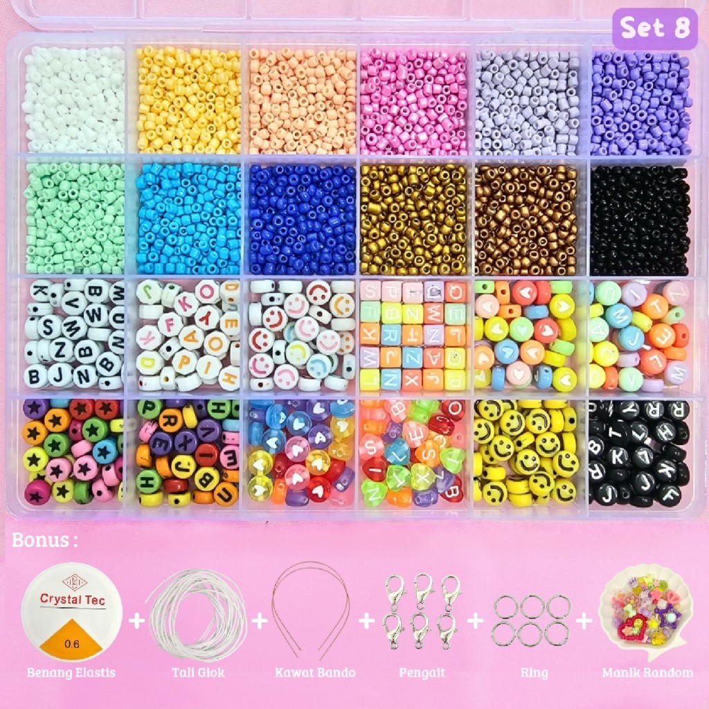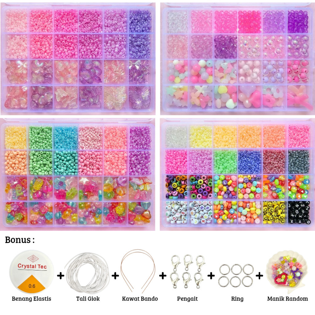 Set Bahan Diy Manik Manik Set Aesthetic - 1 Set Diy Manik Manik - Manik Manik 1 Set Kotak Lengkap - Bonus Benang Elasti